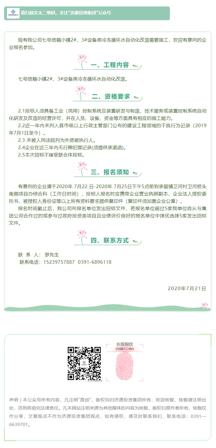 七號信箱小鎮(zhèn)2#、3#設備房冷凍循環(huán)水自動化改造 競爭性議價公告