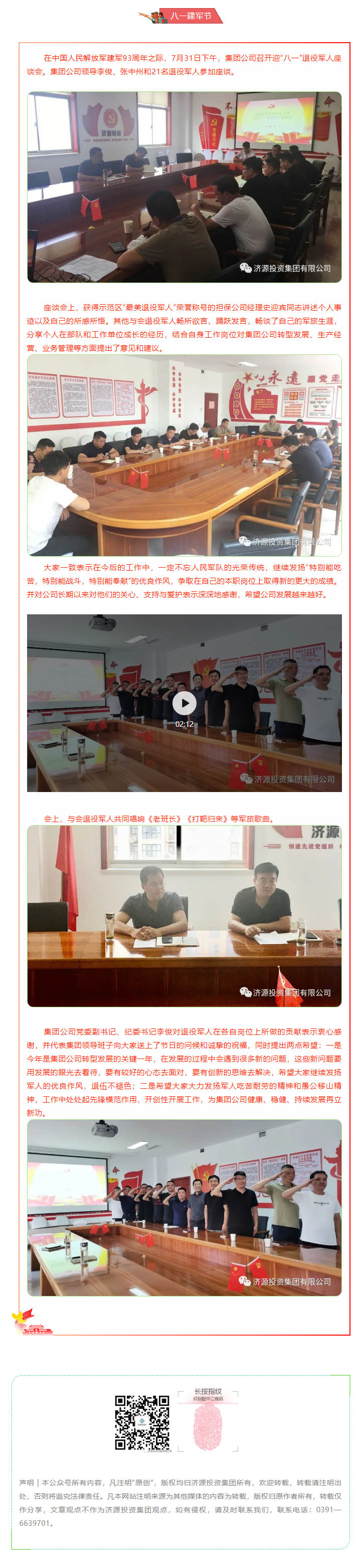 “不忘初心鑄軍魂、集團(tuán)發(fā)展擔(dān)使命”集團(tuán)公司組織開展迎“八一”退役軍人座談會