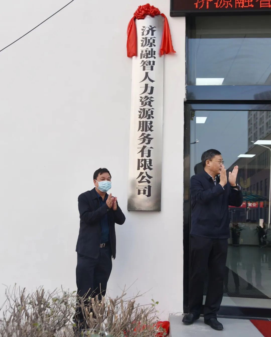 示范區(qū)人社局黨組書記、局長王劍波與濟(jì)源投資集團(tuán)黨委書記、董事長陳明亮共同為濟(jì)源融智人力資源服務(wù)有限公司揭牌!