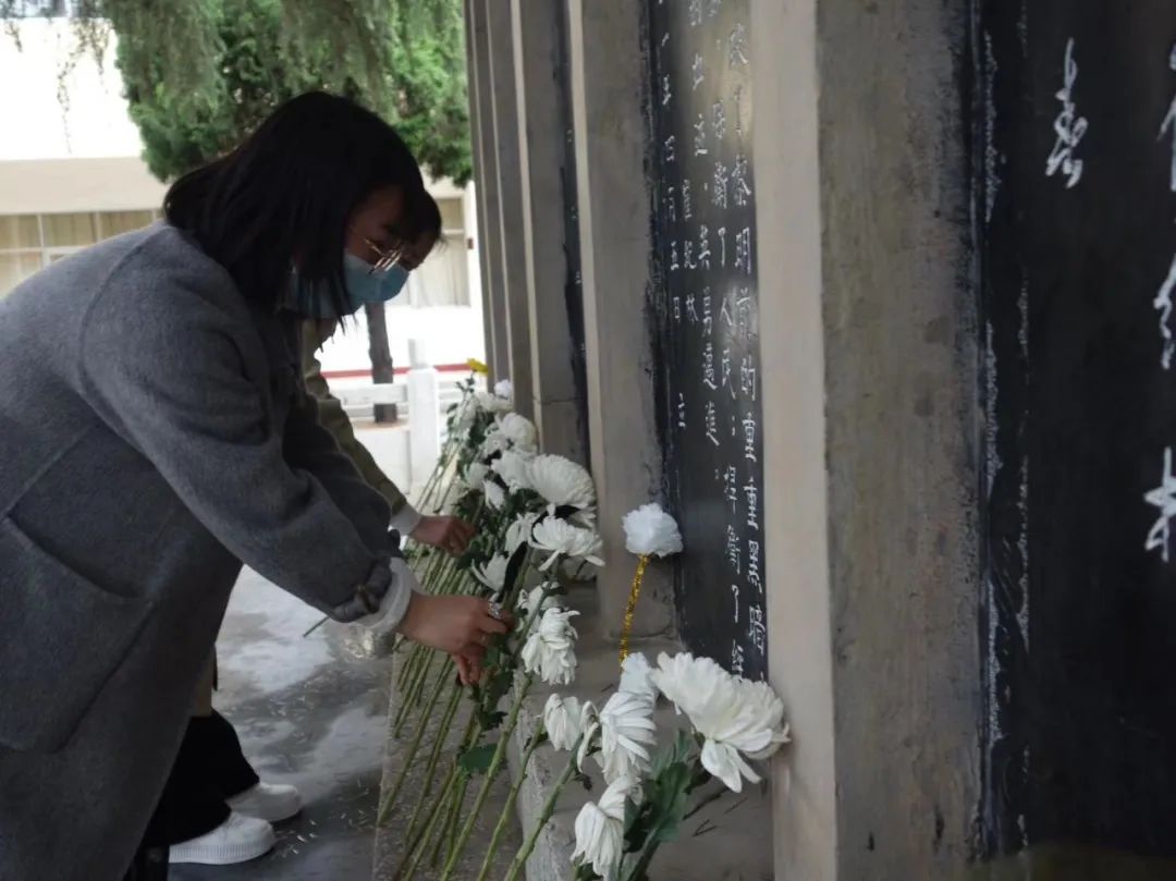 松柏常青的烈士陵園,莊嚴肅穆。團員們排著整齊的隊列現(xiàn)場向先輩英烈虔誠追思,頌祭文、致默哀,集體追思、鞠躬行禮,敬獻鮮花。