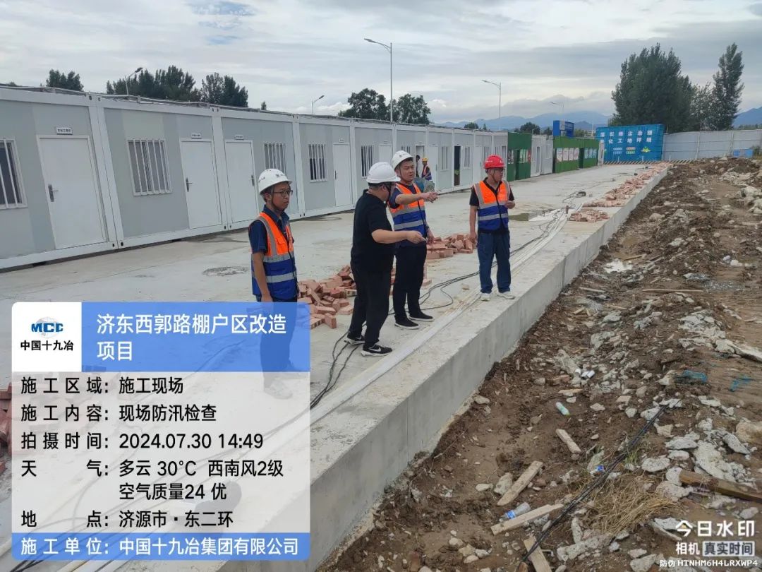 7月30日,集團各子公司在項目建設現(xiàn)場進行防汛檢查及物資儲備,包括防汛沙袋、抽水設備的配備、防汛值班安排等,確保做好項目現(xiàn)場防汛應急工作。