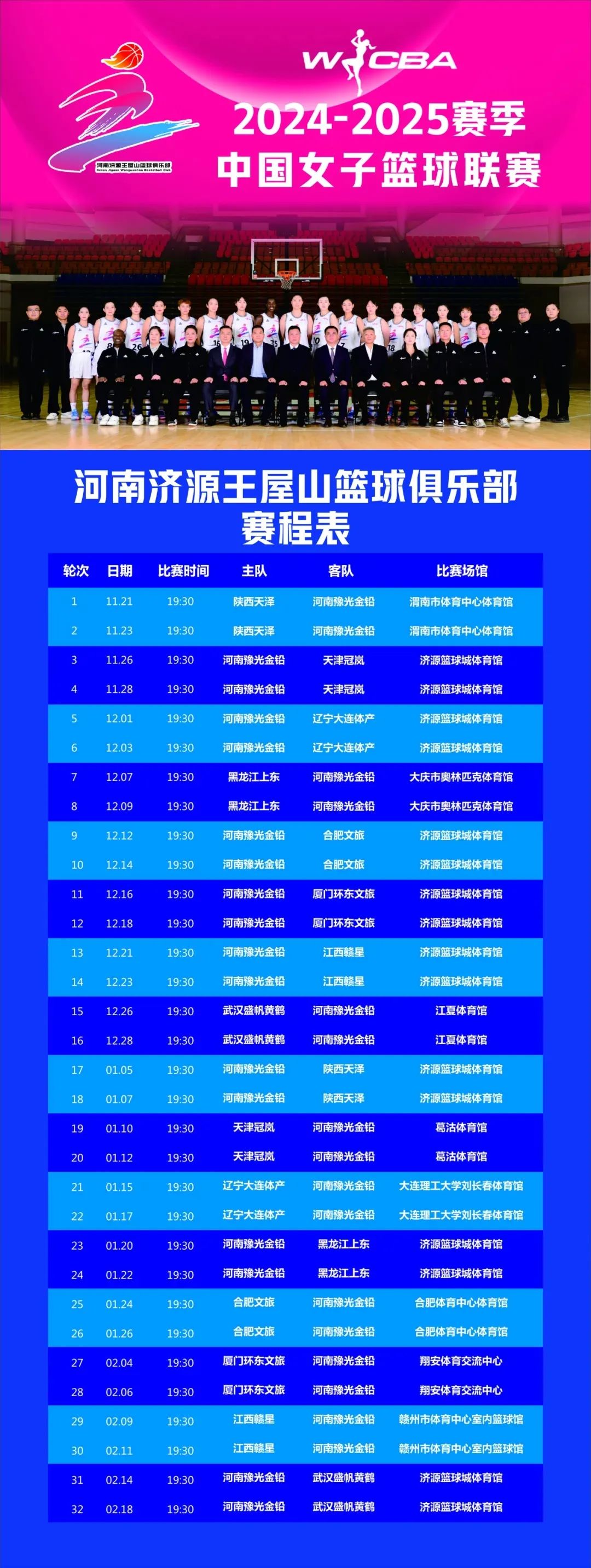 按照賽程,河南豫光金鉛女籃將于11月26日在濟(jì)源籃球城體育館主場迎戰(zhàn)天津冠嵐,拉開2024-2025賽季中國女子籃球聯(lián)賽(WCBA)主場比賽戰(zhàn)幕。