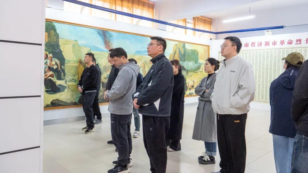 在革命紀念館,大家透過斑駁褪色的照片、字跡模糊的家書、文物,追尋紅色記憶,接受黨史教育,沉浸式感受“紅色信仰力量”。集團公司退伍軍人們以濟源保衛(wèi)戰(zhàn)為例,向團員們講述老一輩先烈故事,傳遞軍人以守護為天職的戰(zhàn)斗精神、攻堅精神,而企業(yè)發(fā)展同樣需要堅守初心、攻克難關的奮斗精神。??