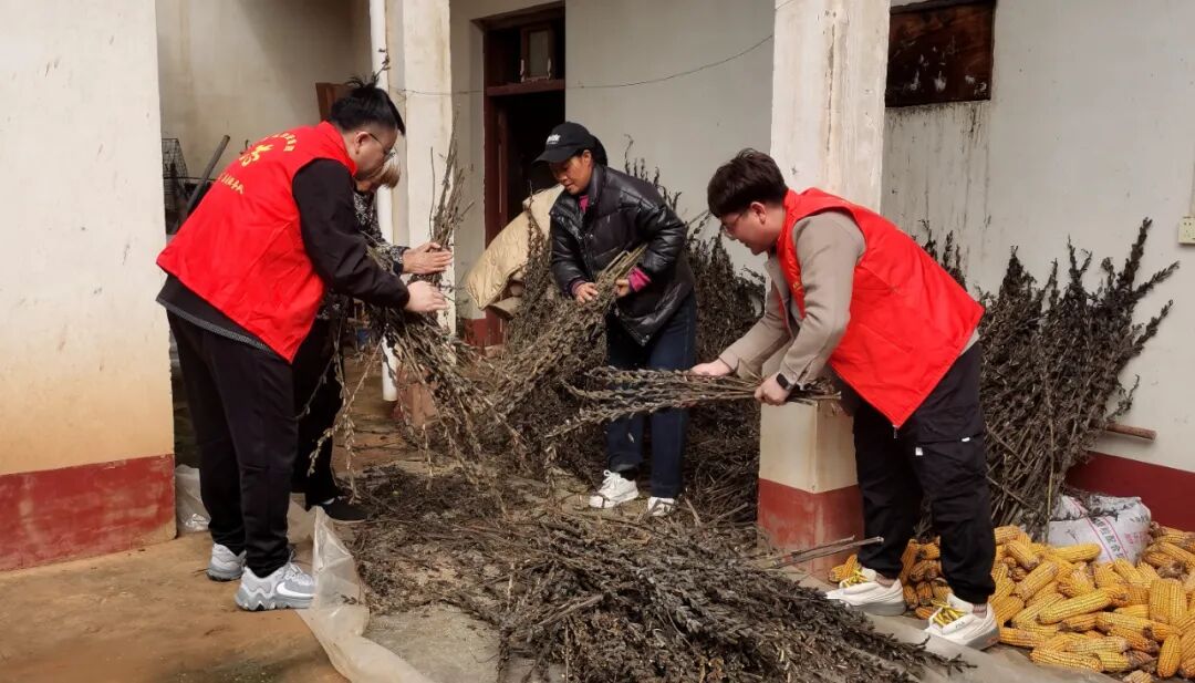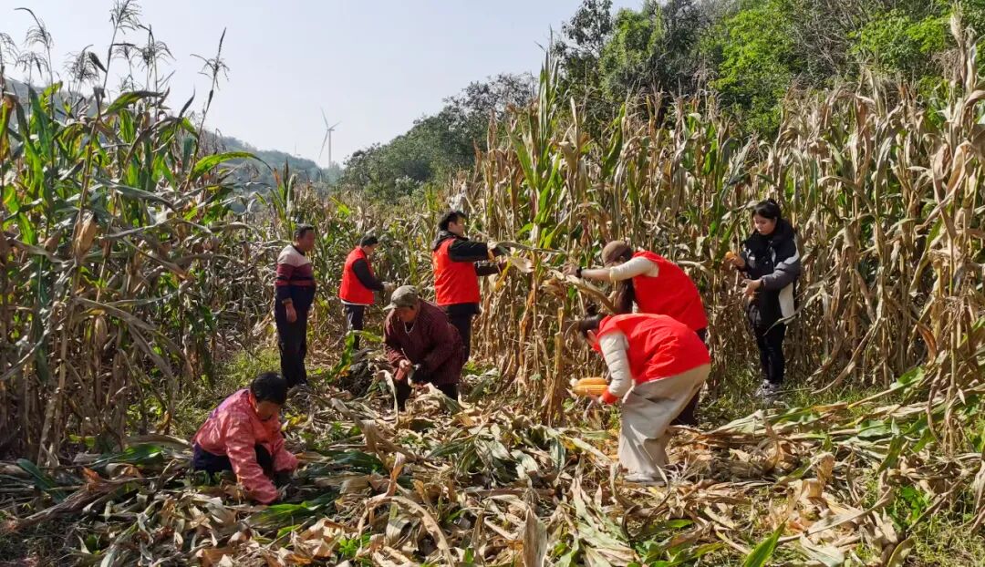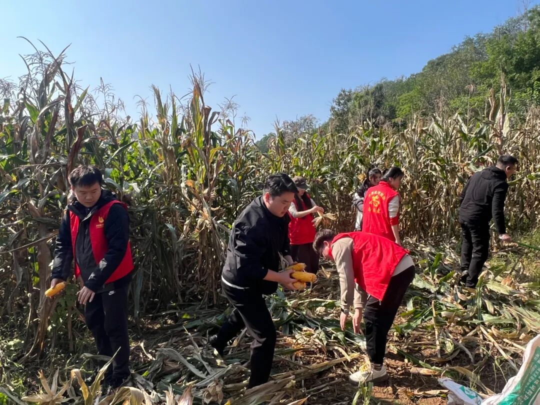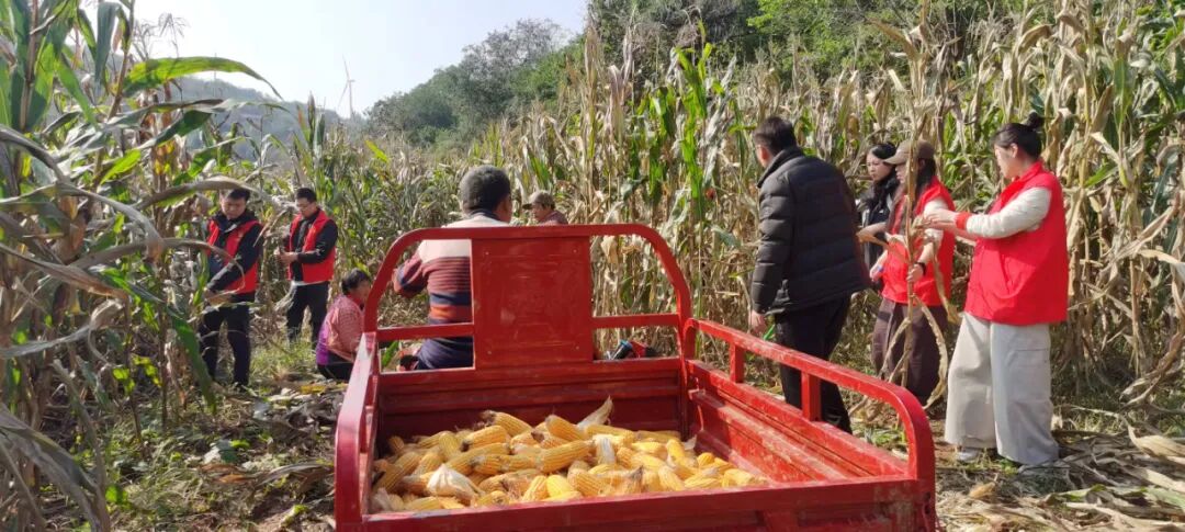 由于今年雨季延遲,導(dǎo)致坡池村玉米收獲期推后,冬季作物播種也面臨壓力。了解到這一緊迫情況后,志愿者們迅速行動(dòng),深入田間地頭,開(kāi)展農(nóng)田治理與作物搶收工作。大家擼起袖子,俯下身子,與農(nóng)戶們一同搶收玉米,并協(xié)助運(yùn)送歸倉(cāng)。金黃的玉米地里,“志愿紅”與“秋收黃”交相輝映,構(gòu)成了一幅美麗的豐收助農(nóng)圖,及時(shí)緩解了農(nóng)戶們的燃眉之急。