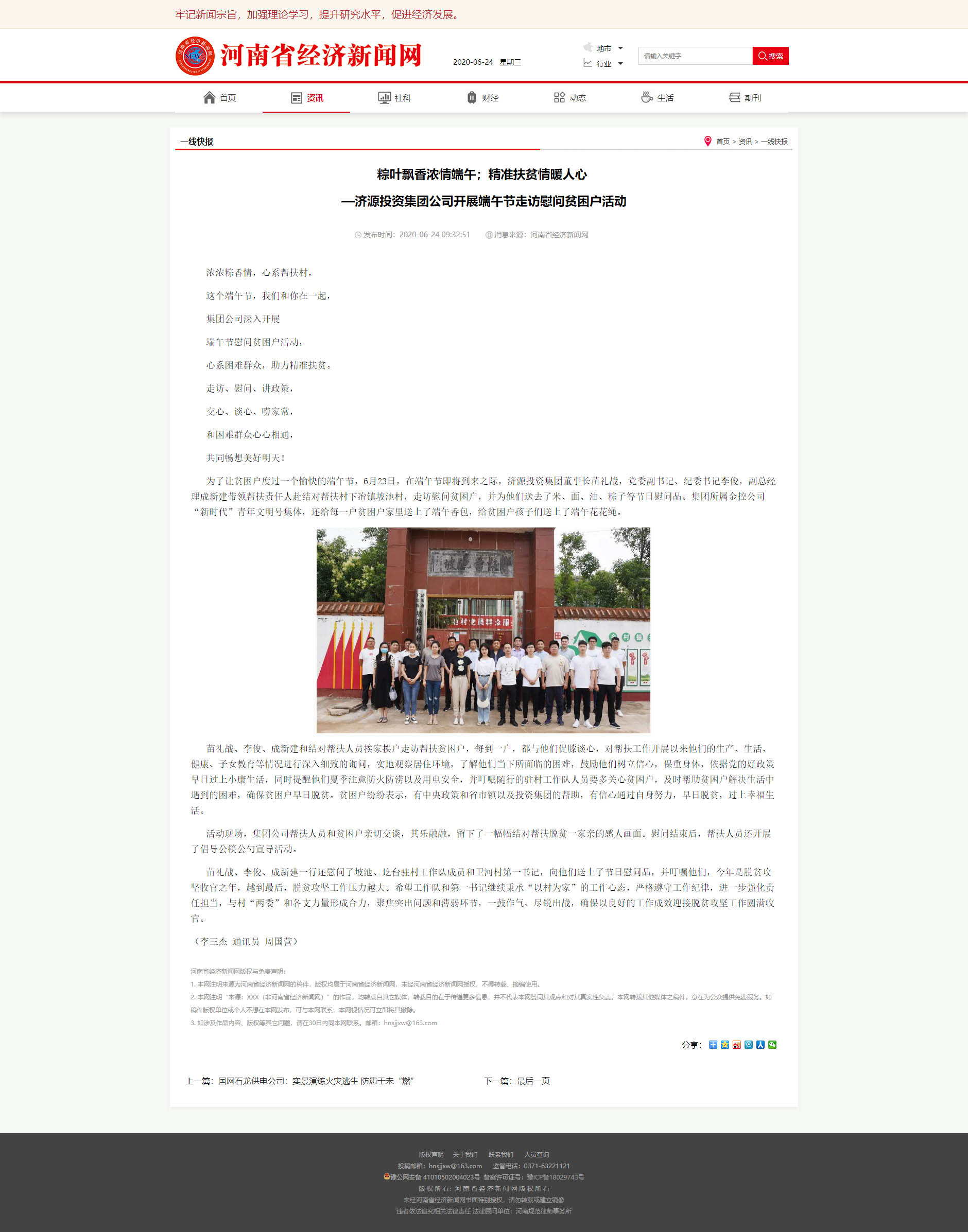 河南經(jīng)濟新聞網(wǎng):粽葉飄香濃情端午;精準扶貧情暖人心 —濟源投資集團公司開展端午節(jié)走訪慰問貧困戶活動