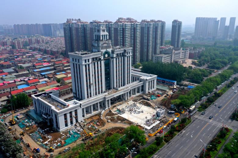 “這是當(dāng)前最主要的施工環(huán)節(jié),我們安排了130余名工人。”項(xiàng)目技術(shù)負(fù)責(zé)人楊超委說,10層以下的外墻已完成全部施工,當(dāng)前難度最大的工作就是主樓正前方兩根羅馬柱的干掛。